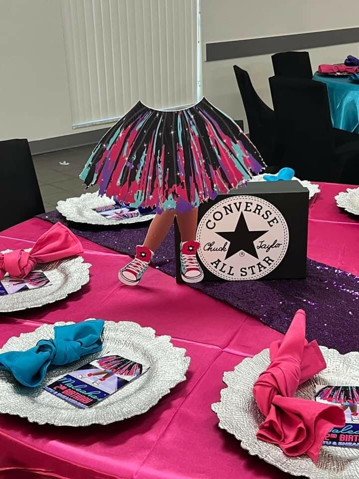 Add some serious style to your Sneaker Ball setup with this chic tutu centerpiece! Designed to complement your glam sneaker-themed celebration, this cutout features fashionable kicks paired with a layered tutu — perfect for party tables, dessert displays, or photo areas.